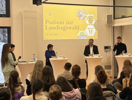 Mit Blick auf mögliche Koalitionen mussten die Bewerberinnen und Bewerber um das Direktmandat außerdem ihre politischen Optionen darlegen. In der anschließenden offenen Fragerunde konnten einzelne Themen vertieft werden. Im Mittelpunkt standen dabei Aspekte aus der Lebenswelt junger Menschen: steigende Lebenshaltungskosten, Wohnraum für Studierende und Auszubildende, kulturelle Angebote wie der Kulturpass oder die Ehrenamtskarte sowie der Umgang mit aktuellen Bedrohungen für die Demokratie und die Rolle von Bildungs- und Demokratiearbeit.