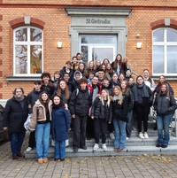In der Woche vom 12. bis 16. Mai 2025 war eine 22-köpfige Schülergruppe des Collège Canterane aus Castelnau-de-Medoc gemeinsam mit ihren Lehrkräften zu Gast an der Schule St. Gertrudis, um im Rahmen des Programms Erasmus+ den gegenseitigen Kontakt und Austausch zwischen verschiedenen Nationen zu erleben. Für unkomplizierte Formen der Begegnung standen viele sportliche Aktivitäten auf dem Programm. Weitere Aspekte waren das Kennenlernen von Land und Leuten in den Familien der Austauschpartner aus den Klassen 8 des Gymnasiums und der Realschule sowie kulturelle Veranstaltungen.